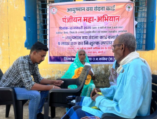 उत्तर बस्तर कांकेर, 22 जनवरी 2026/ जिले के 70 वर्ष से अधिक उम्र के हितग्राही जिनका पूर्व में आयुष्मान कार्ड बन चुका है उन्हें भी दोबारा पंजीयन ई-केवाईसी करवाने की आवश्यकता है। इस संबंध में जानकारी देते हुए मुख्य चिकित्सा एवं स्वास्थ्य अधिकारी ने बताया कि आयुष्मान वय वंदना कार्ड में पंजीयन करवाने के लिए आधार कार्ड एवं मोबाइल नम्बर लेकर आना आवश्यक है। वर्तमान में आयुष्मान वय वंदना कार्ड पंजीयन का कार्य जिले के समस्त शासकीय स्वास्थ्य केन्द्रों, अस्पताल एवं च्वाइस सेंटरों में किया जा रहा है।