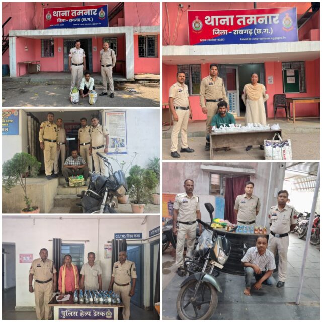 🚨 तमनार, छाल, पुसौर और जूटमिल पुलिस की अलग- अलग कार्रवाई में 70 लीटर देशी प्लेन/अंग्रेजी और महुआ शराब और 3 दुपहिया वाहन जब्त