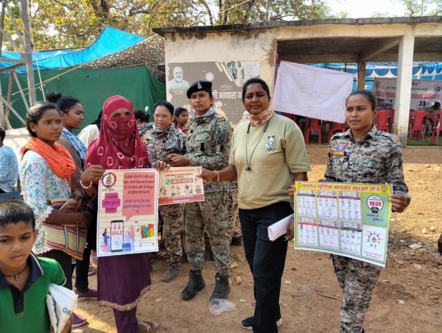 👮♂️ श्री निखिल राखेचा पुलिस अधीक्षक कांकेर के निर्देशानुसार महिला रक्षा टीम (कांकेर पुलिस) द्वारा ताडोकी में आयोजित तीन दिवसीय मेले जाकर जागरूकता अभियान के तहत नुक्कड़ नाटक के आयोजन के माध्यम से लोगों को शराब के सेवन से परिवार व समाज में होने वाले नुकसान,यातायात नियमों के उल्लंघन से जान माल की क्षति,घरेलू हिंसा,मानव तस्करी, साइबर अपराध महिलाओं के साथ होने वाले अपराध के बारे में लोगों को विस्तार से समझाने के पश्चात इससे बचने के उपाय एवं बरतने वाली सावधानियों से भी अवगत कराया गया ।इसके साथ ही महिलाओं एवं छात्राओं को अभिव्यक्ति एप की जानकारी देकर इसकी कार्यप्रणाली एवं ऑनलाइन शिकायत करने के तरीके के बारे में बताकर 20 से अधिक संख्या में डाउनलोड कराया गया तथा कई जगहों में कांकेर पुलिस द्वारा शिकायत पेटी लगाई गई है इसकी भी जानकारी दी गई कि किस प्रकार शिकायत पेटी के माध्यम से अपनी समस्या या संदिग्ध गतिविधियों की सूचना दे सकतीं हैं ।छात्राओ को गुड टच, बैड टच, बाल विवाह,पाक्सो एक्ट, सोशल मिडिया की सुरक्षित उपयोग करने व छात्राओं से संवाद कर अपनी बचाव अपनी सुरक्षा के लिये सेल्फ डिफेंस का डेमो दिखाकर छात्राओं को जागरूक किया गया।