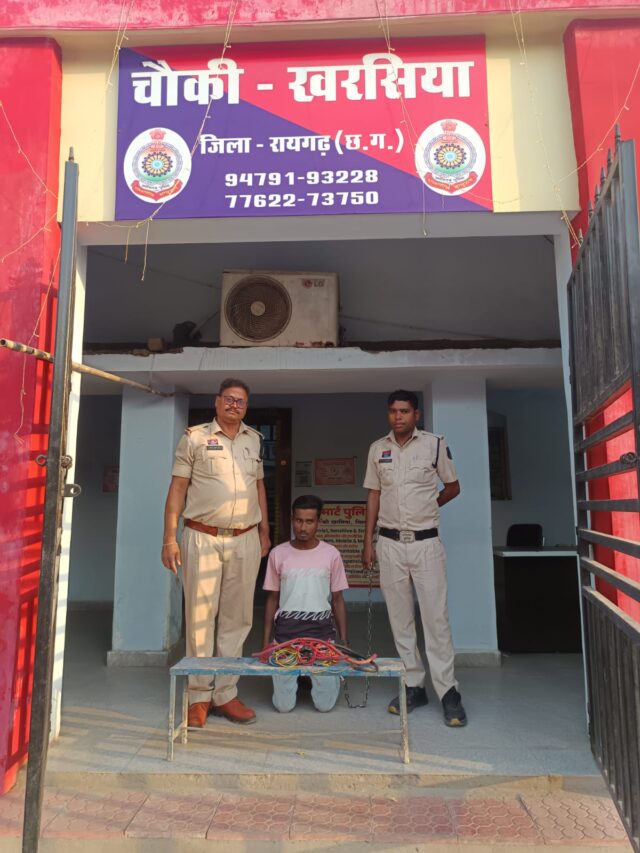 विवेचना के दौरान दिनांक 12.04.2026 को चौकी खरसिया पुलिस द्वारा संदेही हेमंत कुमार कुर्रे (उम्र 25 वर्ष), निवासी मौहापाली को हिरासत में लेकर पूछताछ की गई, जिसने वेयरहाउस से केबल तार चोरी करना स्वीकार किया। आरोपी के कब्जे से चोरी गया केबल तार गवाहों के समक्ष बरामद कर जप्त किया गया। आरोपी को गिरफ्तार कर न्यायिक रिमांड पर भेजा गया है। उक्त कार्रवाई में चौकी प्रभारी त्रिनाथ त्रिपाठी, सहायक उप निरीक्षक मनोज पटेल, आरक्षक साविल चंद्रा, किशोर राठौर एवं बोधराम सिदार की सराहनीय भूमिका रही।