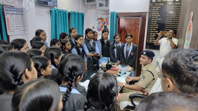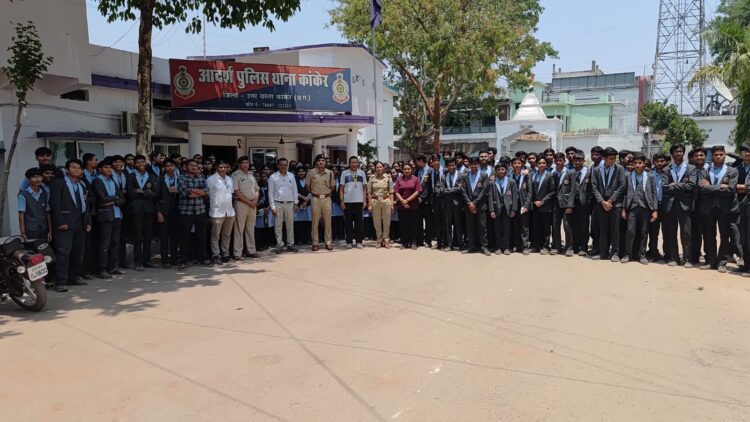 कांकेर पुलिस द्वारा विद्यार्थियों को थाना से संबंधित दी गई विभिन्न प्रकार की जानकारी।