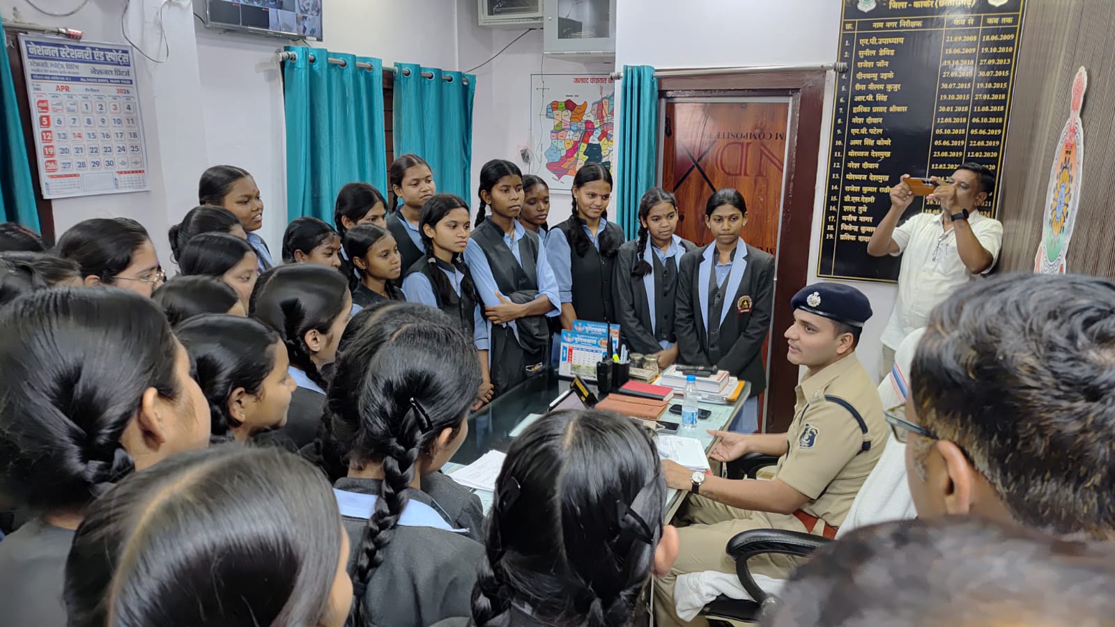 शैक्षिणक भ्रमण हेतु थाना विजिट में 65-70 विद्यार्थियों ने लिया हिस्सा।
