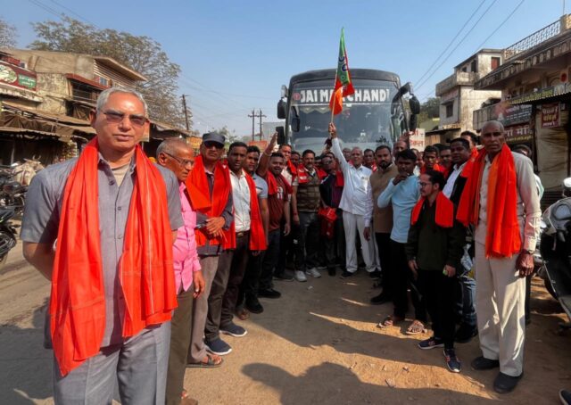 BJP Mandal Sarsiwan workers leave on a pilgrimage.