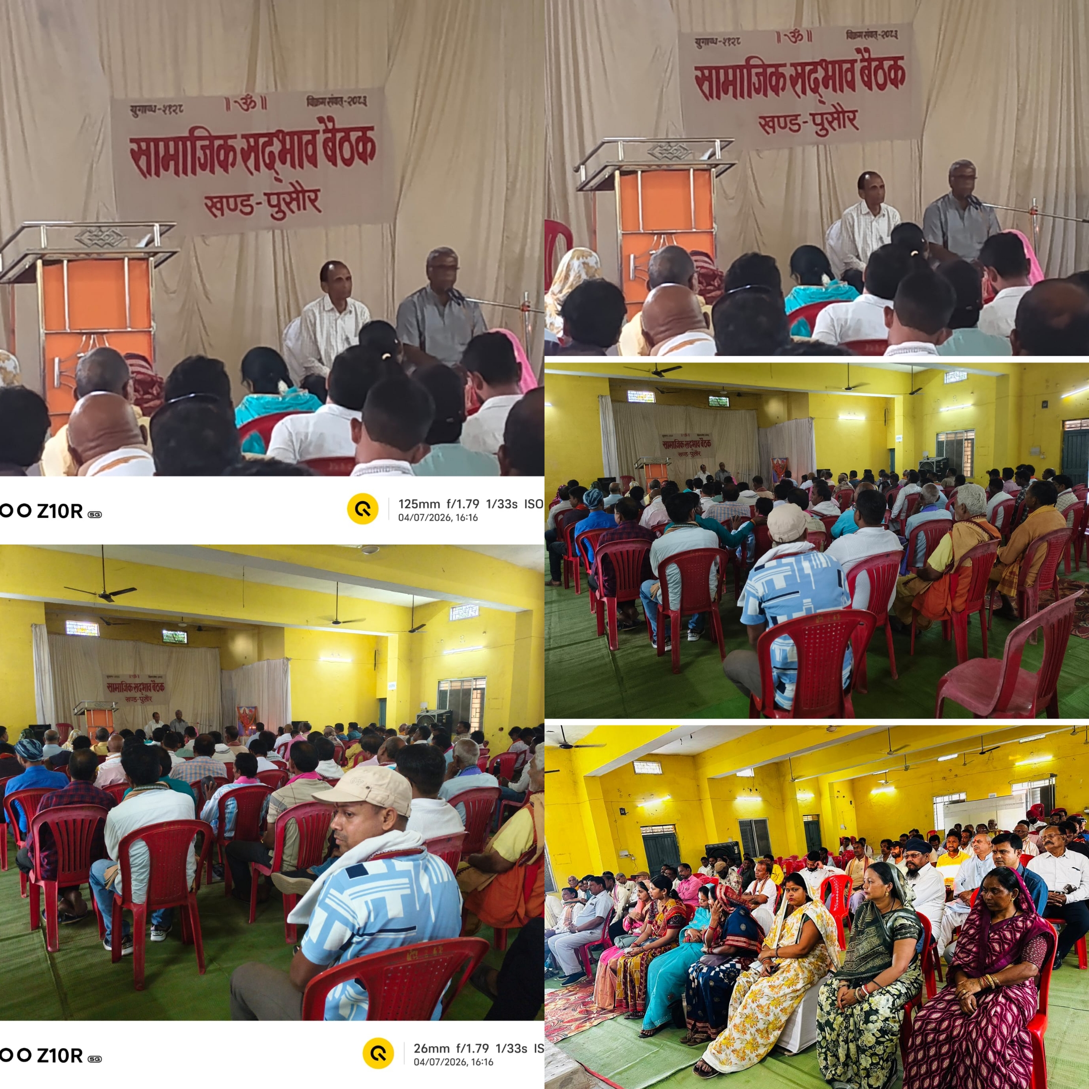 रायगढ़। जिले के पुसौर खंड में 07 अप्रैल 2026 को शाम 4 बजे से 7 बजे तक सामाजिक सद्भाव बैठक का सफल आयोजन किया गया। इस महत्वपूर्ण बैठक में समाज में आपसी भाईचारा, समरसता और एकता को सुदृढ़ करने को लेकर गहन विचार-विमर्श किया गया।