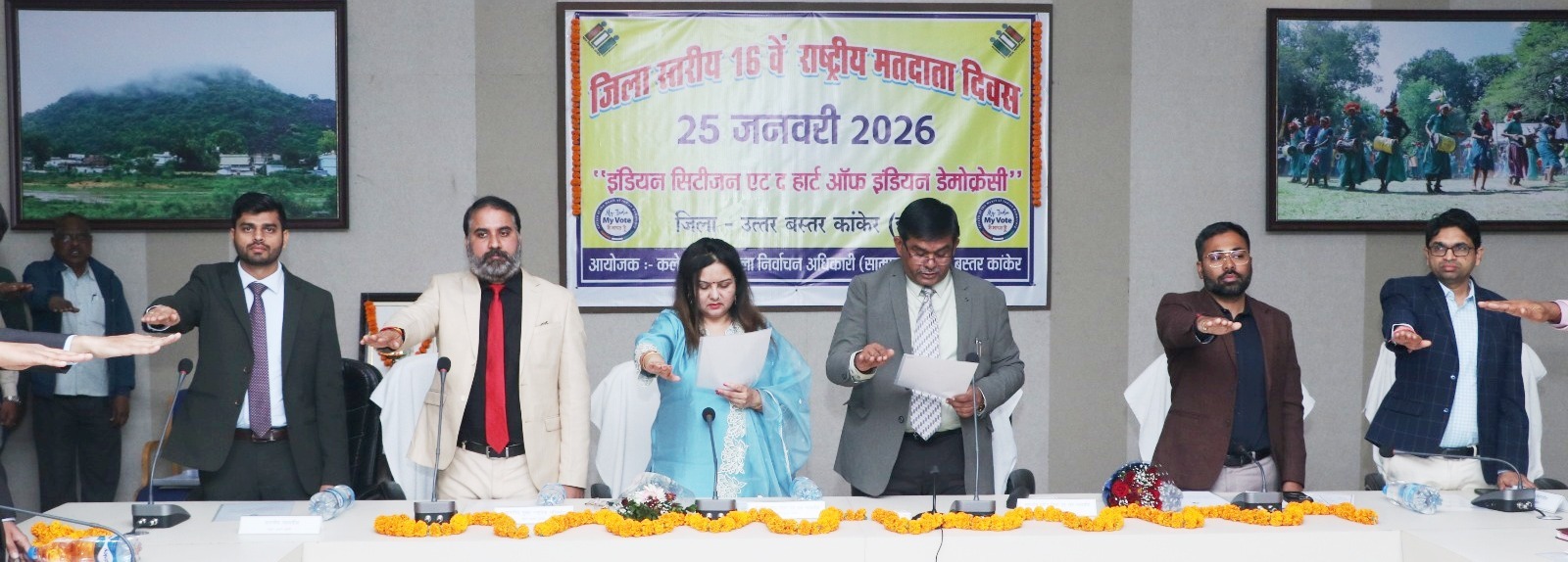 उत्तर बस्तर कांकेर, 25 जनवरी 2026/ भारत निर्वाचन आयोग के निर्देशानुसार इस वर्ष 16वें राष्ट्रीय मतदाता दिवस ‘मेरा भारत, मेरा वोट’ के थीम पर आयोजित किया गया। इस अवसर पर भारत के मुख्य निर्वाचन आयुक्त श्री ज्ञानेश कुमार द्वारा मतदाताओं के नाम संदेश प्रसारित की गई। राष्ट्रीय मतदाता दिवस का जिला स्तरीय आयोजन प्रधान जिला एवं सत्र न्यायाधीश कांकेर श्री संजीव कुमार टामक के मुख्य आतिथ्य में किया गया।