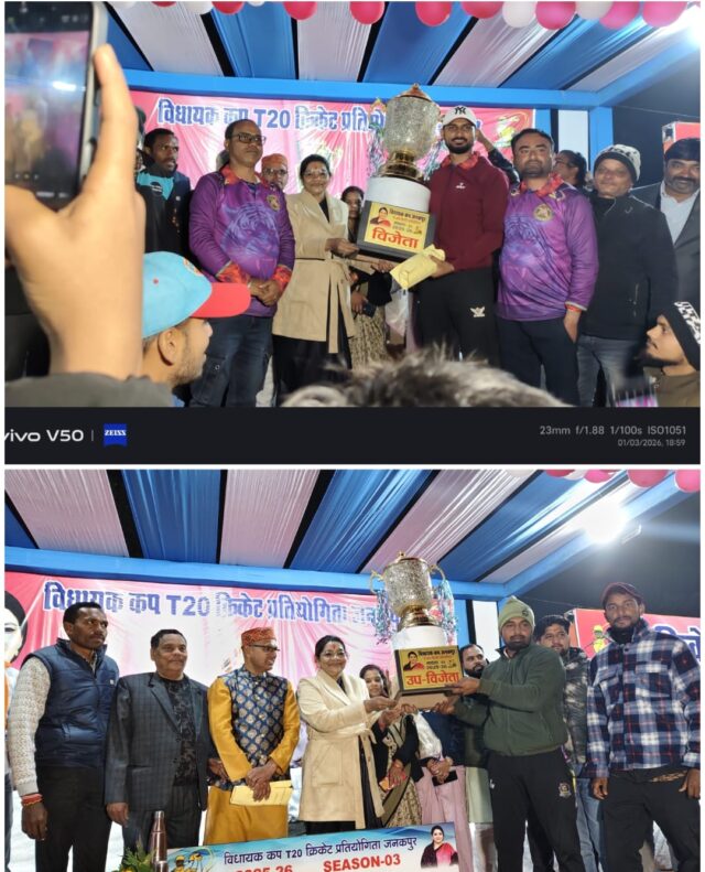 With a spectacular closing ceremony, the MLA Cricket Cup turned into a grand sports festival. Bandhavgarh won the title by 17 runs, and MLA Renuka Singh encouraged the players.