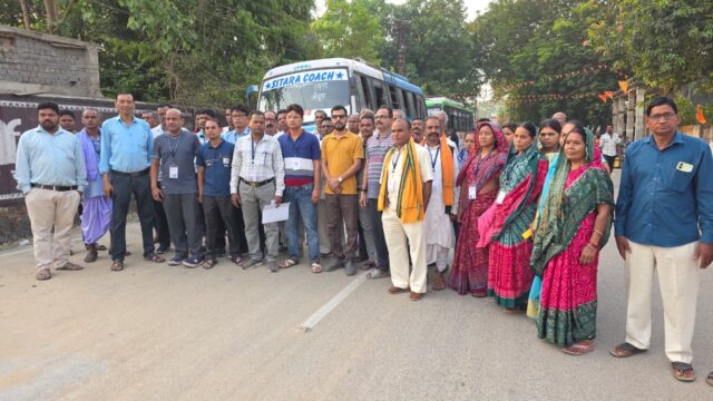 रवाना होने से पूर्व सभी यात्रियों को शुभकामनाएं देते हुए उनके मंगलमय यात्रा की कामना की गई। पूरे वातावरण में भक्ति का माहौल देखने को मिला, जहां “जय श्रीराम” के जयघोष से परिसर गूंज उठा। श्रद्धालु पूरे उत्साह और आस्था के साथ अपने जीवन की इस विशेष यात्रा पर निकले। यात्रियों को रायगढ़ से बसों के माध्यम से बिलासपुर रेलवे स्टेशन तक पहुंचाया गया, जहां से वे विशेष रेलगाड़ी द्वारा अयोध्या धाम के लिए प्रस्थान किए। यात्रा के दौरान सभी आवश्यक व्यवस्थाएं सुनिश्चित की गई हैं, जिससे यात्रियों को किसी प्रकार की असुविधा न हो।