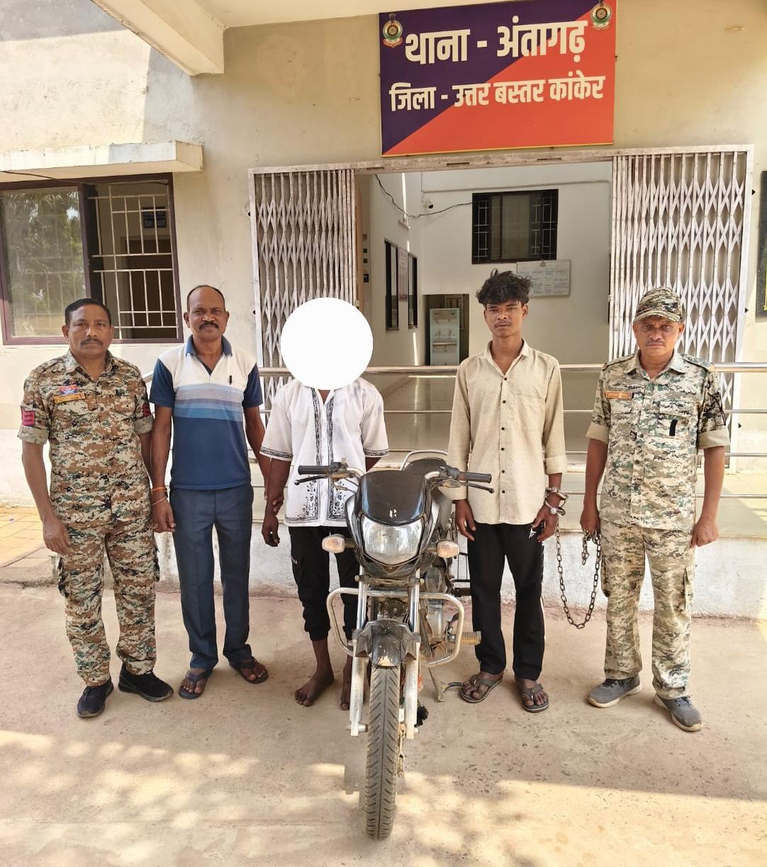 * घटना में प्रयुक्त एवं थाना अंतागढ़ के अपराध क्रमांक 15/2026 में चोरी एक मोटरसाइकिल (कीमती 33000 हजार ), तथा