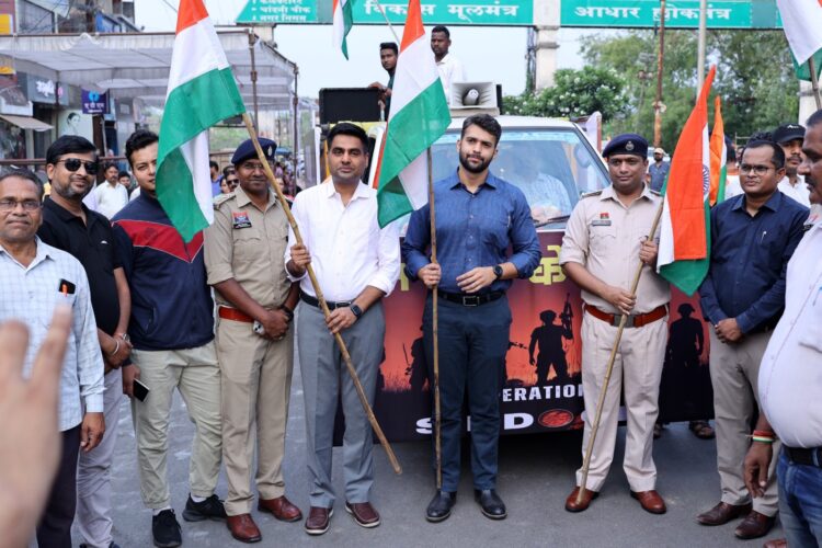 रायगढ़ / रायगढ़ में ‘ऑपरेशन सिंदूर’ अभियान की सफलता पर भारतीय सेना के शौर्य और वीरता को नमन करते हुए रायगढ़ में तिरंगा यात्रा निकाली गई। देश भक्ति गीतों और सेना के हौसले व जज्बे को सलाम करते हुए नारों के साथ रायगढ़ के शहीद चौक से शुरू हुई यह यात्रा प्रमुख मार्गो से गुजरती हुई शहर के नटवर स्कूल में समाप्त हुई। इस यात्रा में राज्यसभा सांसद श्री देवेन्द्र प्रताप सिंह, लोकसभा सांसद श्री राधेश्याम राठिया, महापौर श्री जीवर्धन चौहान, सभापति श्री डिग्री लाल साहू, कलेक्टर श्री मयंक चतुर्वेदी, पुलिस अधीक्षक श्री दिव्यांग पटेल, सीईओ जिला पंचायत श्री जितेन्द्र यादव सहित स्थानीय जनप्रतिनिधि, अधिकारी-कर्मचारी आम नागरिक, बच्चे एवं जवान बड़ी संख्या में शामिल होकर देश के प्रति अपनी एकजुटता एवं सम्मान प्रकट किया।