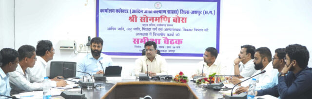 रायपुर / आदिम जाति कल्याण विभाग के प्रमुख सचिव सोनमणि बोरा ने सोमवार को जशपुर जिला के कलेक्टोरेट सभाकक्ष में विभाग की समीक्षा बैठक लेकर विशेष पिछड़ी जनजाति पहाड़ी कोरवा परिवारों को पीएम जनमन योजना का लाभ देने के निर्देश दिए हैं। उन्होंने पक्के मकान, मोबाइल मेडिकल यूनिट, आश्रम छात्रावास के निर्माण कार्य, पानी, बिजली, स्वास्थ्य, शिक्षा, आजीविका मूलक गतिविधियों सहित अन्य योजनाओं की जानकारी ली। इस अवसर पर कलेक्टर श्री रोहित व्यास, जिला पंचायत सीईओ श्री अभिषेक कुमार, उप सचिव श्री बी. के. राजपूत सहित आदिवासी विकास विभाग के अधिकारीगण उपस्थित थे।