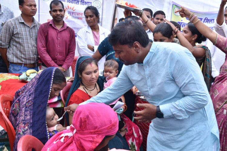 समाधान शिविर में वन मंत्री श्री केदार कश्यप ने समस्त ग्रामवासियों को जल संरक्षण की महत्ता बताते हुए प्रत्येक घर में वाटर हार्वेस्टिंग की संरचना लगवाने, पानी के मूल्य को समझते हुए जल के अपव्यय को रोकने और पारंपरिक जल स्रोत्रों की साफ-सफाई और संरक्षण किया गया है। महिला एवं बाल विकास विभाग द्वारा 02 अन्नप्रासन और 02 महिलाओं का वर्धन की शपथ दिलाई।