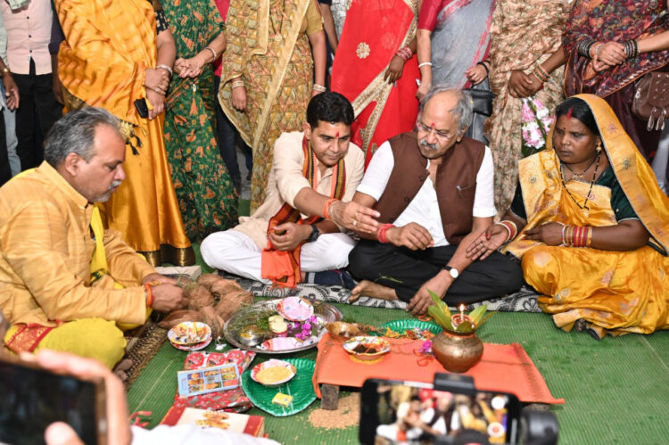 Revenue Minister Tankaram Verma and MP Brijmohan Agarwal performed Bhoomi Pujan
