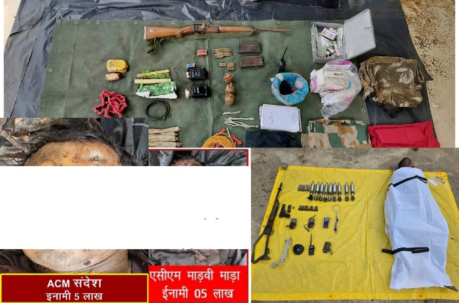 बीजापुर@दक्षिण बस्तर के सुकमा और बीजापुर जिलों की सरहद पर सुरक्षाबलों और माओवादियों के बीच 22 मई को दो अलग-अलग जगहों पर भीषण मुठभेड़ें हुईं। इन संयुक्त अभियानों में प्रतिबंधित संगठन CPI (माओवादी) के दो एरिया कमेटी सदस्य मारे गए, जबकि एक वीर कोबरा जवान शहीद हो गया। मुठभेड़ों के बाद दोनों स्थानों से बड़ी मात्रा में हथियार, विस्फोटक और नक्सली सामग्री बरामद की गई है। पेसलपाड़ मुठभेड़ (सुकमा जिला) पुलिस अधीक्षक किरण चव्हाण ने बताया कि सुकमा जिले के थाना किस्टाराम क्षेत्र में माओवादियों की उपस्थिति की सूचना पर DRG, STF, कोबरा और CRPF की संयुक्त टीम 22 मई को अभियान पर रवाना हुई थी। उसी शाम पेसलपाड़ जंगलों में माओवादियों से मुठभेड़ हुई, जिसमें एक वर्दीधारी हार्डकोर माओवादी ढेर हो गया। मृत माओवादी की पहचान माड़वी माडा के रूप में हुई है, जो CPI (माओवादी) के साउथ सब ज़ोनल ब्यूरो का डिप्टी कमांडर और एरिया कमेटी सदस्य था। मुठभेड़ स्थल पर खून के धब्बे और घसीटने के निशान अन्य माओवादियों के मारे जाने या घायल होने की संभावना को दर्शाते हैं।