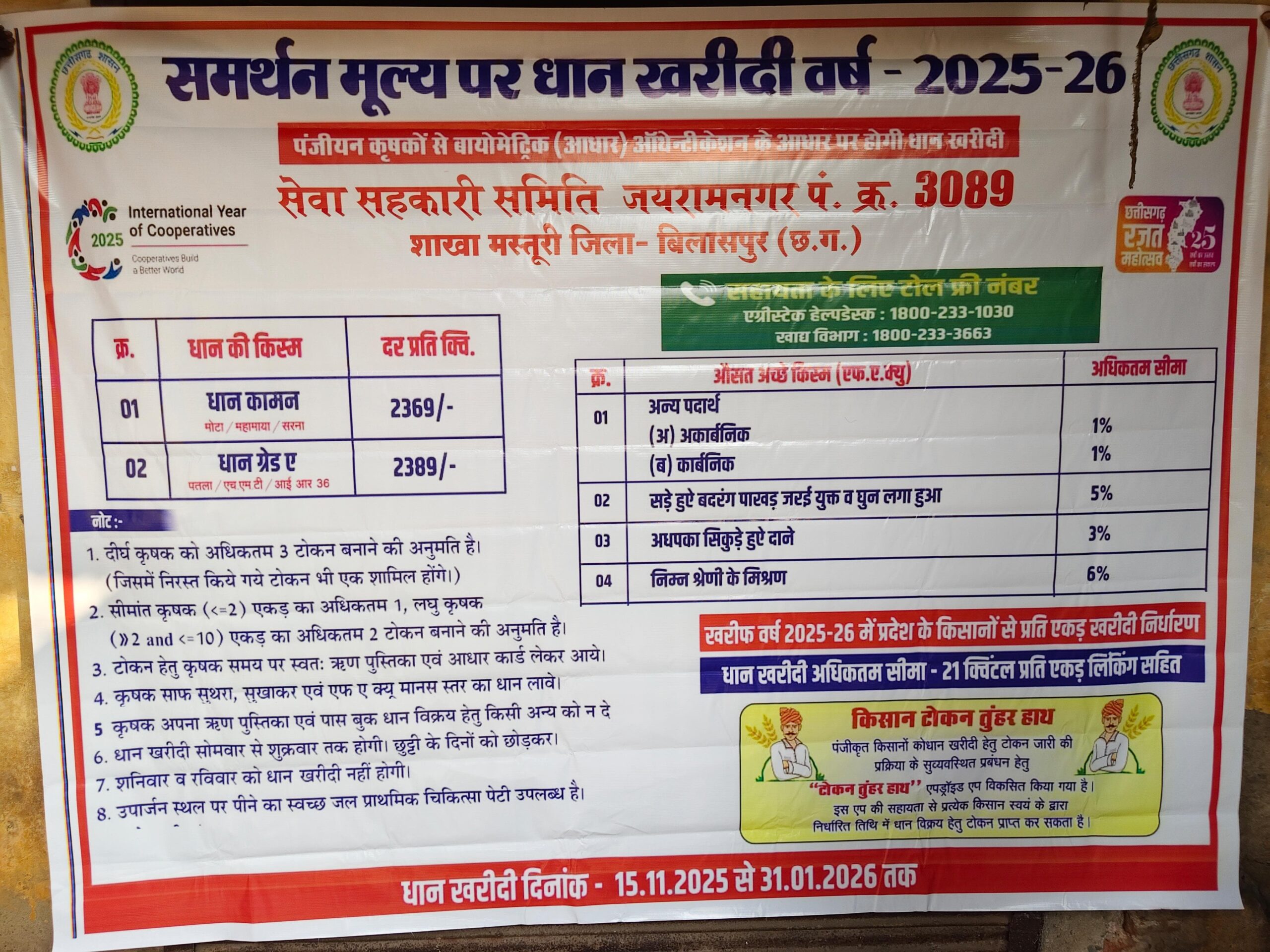 मस्तूरी।बिलासपुर।राज्य सरकार की किसान हितैषी योजनाओं से जिले के किसानों को राहत मिल रही है,इससे न केवल उनके खेती-किसानी के रकबे में वृद्धि हो रही है बल्कि अनेक कल्याणकारी योजनाओं से उनके जीवन के सपने पूरे हो रहे है। मस्तूरी ब्लॉक के जयरामनगर के किसान नरोत्तम लाल ने धान उपार्जन केंद्र में 38 क्विंटल धान बेचा,वे 4 एकड़ में खेती करते हैं।उन्होंने कहा कि शासन द्वारा समर्थन मूल्य पर धान खरीदी से किसानों को आर्थिक संबल मिल रहा है और वे समृद्धि की ओर बढ़ रहे हैं। किसान हितैषी योजनाओं के उन्होंने मुख्यमंत्री विष्णु देव साय का आभार जताया।