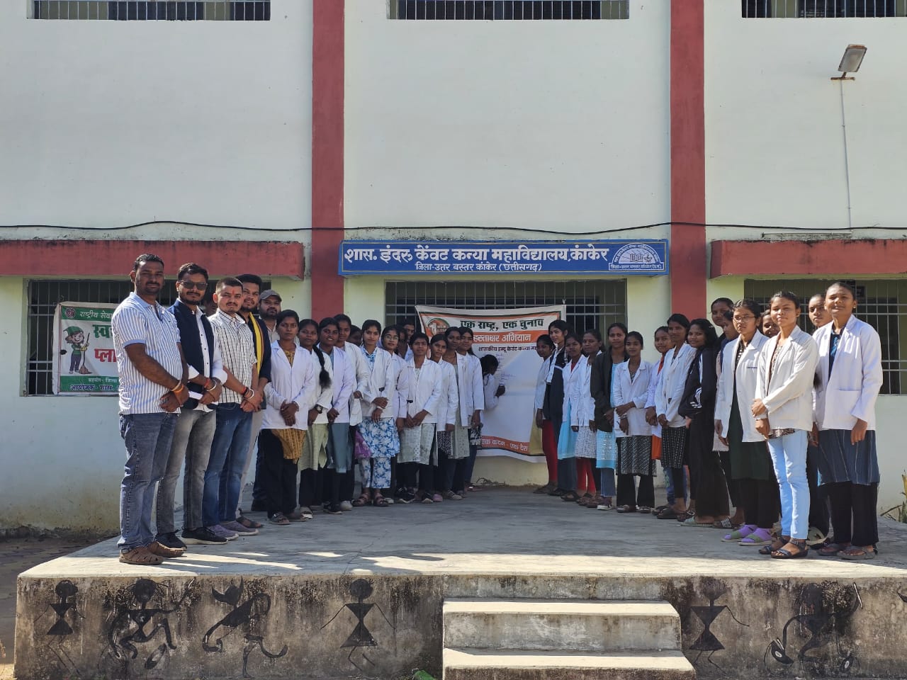 कांकेर I. मंगलवार को शासकीय इंद्रु केवट कन्या महाविद्यालय में एक राष्ट्र एक चुनाव को लेकर सभी विद्यार्थियों से मिलकर इस विषय पर बातचीत कर उन्हें अपना समर्थन अपने हस्ताक्षर के माध्यम से देने हेतु आग्रह किया गया ।