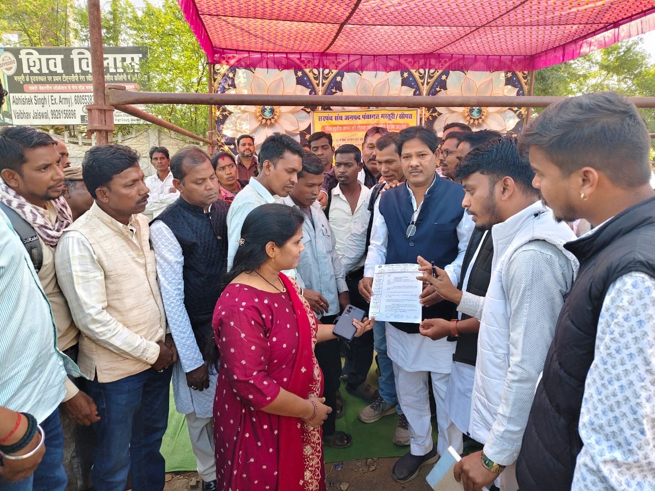 The Sarpanch Association of Masturi staged a protest in front of the district office with a three-point list of demands.