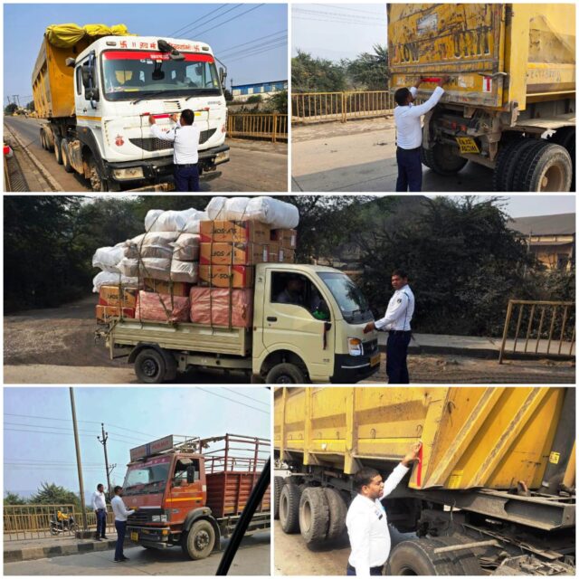 रायगढ़ । राष्ट्रीय सड़क सुरक्षा माह 2026 के तहत पुलिस अधीक्षक श्री दिव्यांग कुमार पटेल के दिशा-निर्देशन एवं ट्रैफिक डीएसपी श्री उत्तम प्रताप सिंह के मार्गदर्शन में यातायात पुलिस रायगढ़ द्वारा यातायात जागरूकता को लेकर लगातार विधिक जागरूकता कार्यक्रम आयोजित किए जा रहे हैं। इसी क्रम में सड़क दुर्घटनाओं की रोकथाम के उद्देश्य से यातायात पुलिस द्वारा भारी वाहनों तथा सभी प्रकार के मालवाहक वाहनों पर रेडियम पट्टी लगाए जाने की कार्रवाई भी की जा रही है।