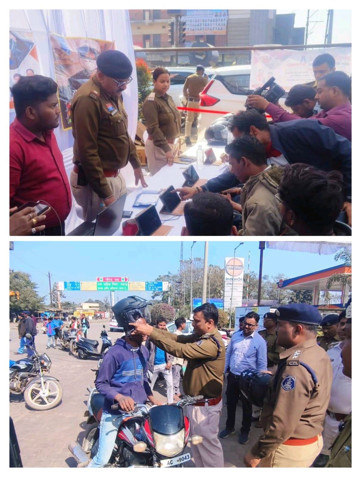 रायगढ़ । राष्ट्रीय सड़क सुरक्षा माह–2026 के अंतर्गत आज दिनांक 06 जनवरी 2026 को यातायात पुलिस रायगढ़ एवं परिवहन विभाग रायगढ़ के संयुक्त तत्वावधान में छातामुड़ा चौक पर हेलमेट जागरूकता को लेकर विशेष शिविर का आयोजन किया गया।
