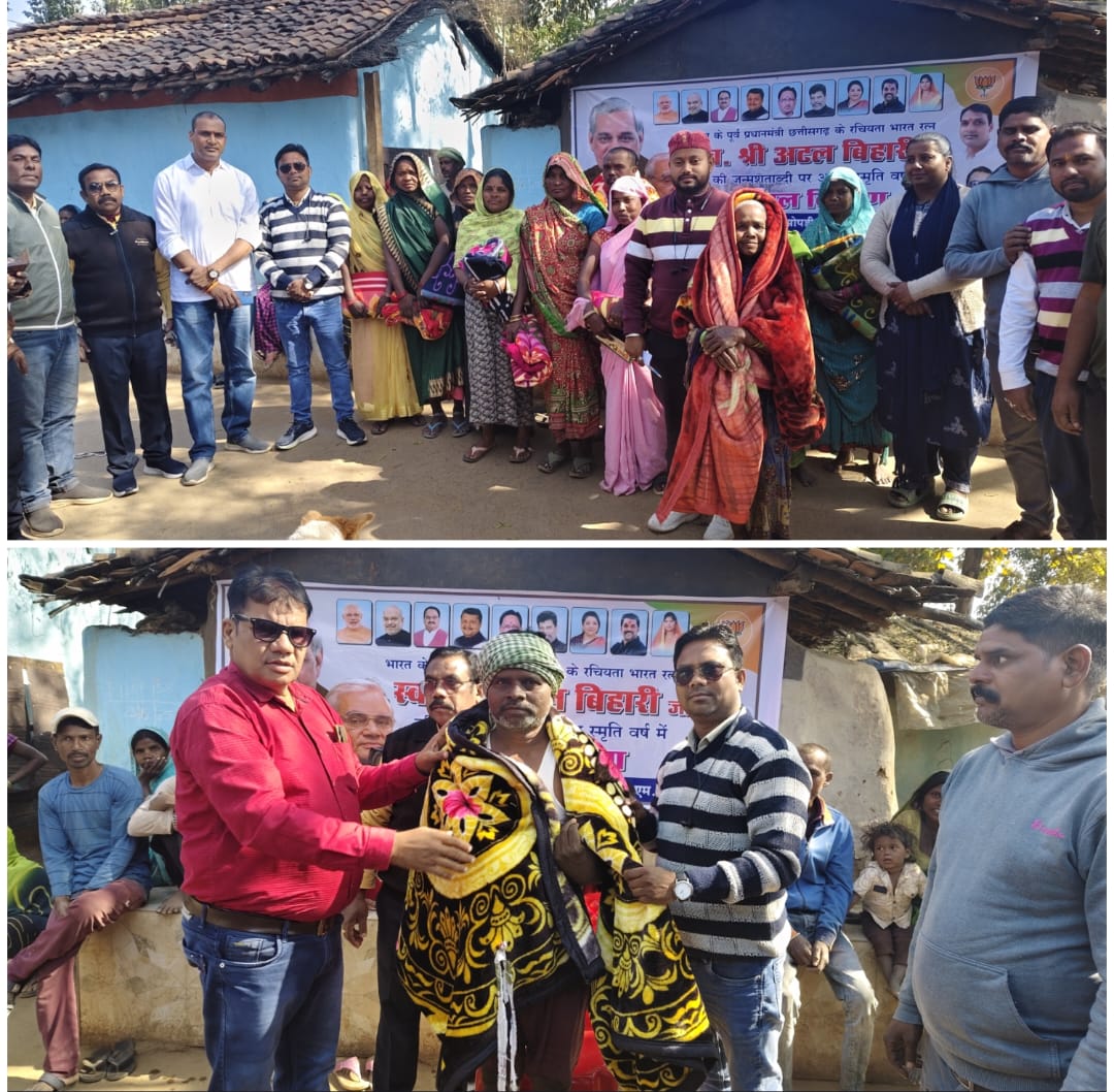 एमसीबी/भारत रत्न, पूर्व प्रधानमंत्री अटल बिहारी वाजपेयी की 101वीं जयंती के अवसर पर भारतीय जनता पार्टी झुग्गी झोपड़ी प्रकोष्ठ के तत्वावधान में नगर पंचायत खोगापानी के वार्ड क्रमांक 01 अंतर्गत घुटरीटोला स्थित झुग्गी झोपड़ी बस्ती में कंबल वितरण कार्यक्रम का आयोजन किया गया। यह आयोजन कड़ाके की ठंड को देखते हुए जरूरतमंद परिवारों को राहत पहुंचाने के उद्देश्य से किया गया।