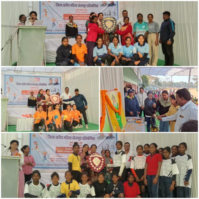 जिला स्तरीय महिला खेलकूद प्रतियोगिता में 100मी. दौड़ (9-18वर्ष) प्रथम मुस्कान, (रायगढ़), द्वितीय-रीना सिदार (धरमजयगढ़) एवं तृतीय-विनिता सरल(पुसौर) रही। इसी तरह 100मी. दौड़ (18-35वर्ष) प्रथम पुर्णिमा चौहान, (पुसौर), द्वितीय सुहानी साहू (रायगढ़), तृतीय पुजा नागवंषी(लैलूंगा), 400मी. दौड़ (9-18वर्ष) प्रथम-आकांक्षा खेस, (लैलूंगा), द्वितीय-सारदा सिदा (तमनार) एवं तृतीय रीना बड़ा(धरमजगढ़), 400मी. दौड़ (18-35वर्ष) प्रथम पुर्णिमा चौहान, (पुसौर), द्वितीय सुहानी साहू (रायगढ़), तृतीय रूकमणी पैंकरा (लैलूंगा), तवा फेंक (9-18वर्ष) प्रथम आयुषी भगत (धरमजयगढ़), द्वितीय मनीषा तिग्गा (लैलंगा), तृतीय अनिषा केरकेट्टा(तमनार), तवा फेंक (9-18वर्ष) प्रथम कविता राठिया (धरमजयगढ़), द्वितीय पुजा साहू (रायगढ़), तृतीय भूमिका श्रीवास(खरसिया), कुश्ती (18-35) सुगंधी राठौर (खरसिया) बैडमिंटन एकल (9-18वर्ष) प्रथम उमा प्रिया (तमनार), द्वितीय निधी सिंह (रायगढ़) बैडमिंटन युगल (9-18वर्ष) प्रथम निधी नव्या (रायगढ़), द्वितीय नैना सिफारिन(तमनार), बैडमिंटन एकल (18-35वर्ष) प्रथम अष्लेषा प्रथम(खरसिया), द्वितीय पुजा साहू (रायगढ़), बैडमिंटन युगल (18-35वर्ष) प्रथम पुर्णिमा चौहान एंव सुजाता, बास्केटबॉल (9-18वर्ष) प्रथम वि.खं रायगढ़ बास्केटबॉल (9-18वर्ष) प्रथम वि.खं रायगढ़ रस्साकसी (9-18वर्ष) प्रथम वि.खं खरसिया द्वितीय धरमजयगढ़ रस्साकसी (9-18वर्ष) प्रथम वि.खं खरसिया, द्वितीय लैलूंगा हॉकी (9-18वर्ष) प्रथम वि.खं लैलूंगा द्वितीय वि.खं पुसौर फुटबॉल (9-18वर्ष) प्रथम वि.खं तमनार खो-खो(9-18वर्ष) प्रथम वि.खं लैलूंगा द्वितीय वि.खं पुसौर खो-खो(18-35वर्ष) प्रथम वि.खं लैलूंगा द्वितीय वि.खं खरसिया वॉलीबॉल(9-18वर्ष) प्रथम वि.खं धरमजयगढ़ द्वितीय वि.खं रायगढ़ वॉलीबॉल(18-35वर्ष) प्रथम वि.खं लैलूंगा द्वितीय वि.खं रायगढ़ रहे।