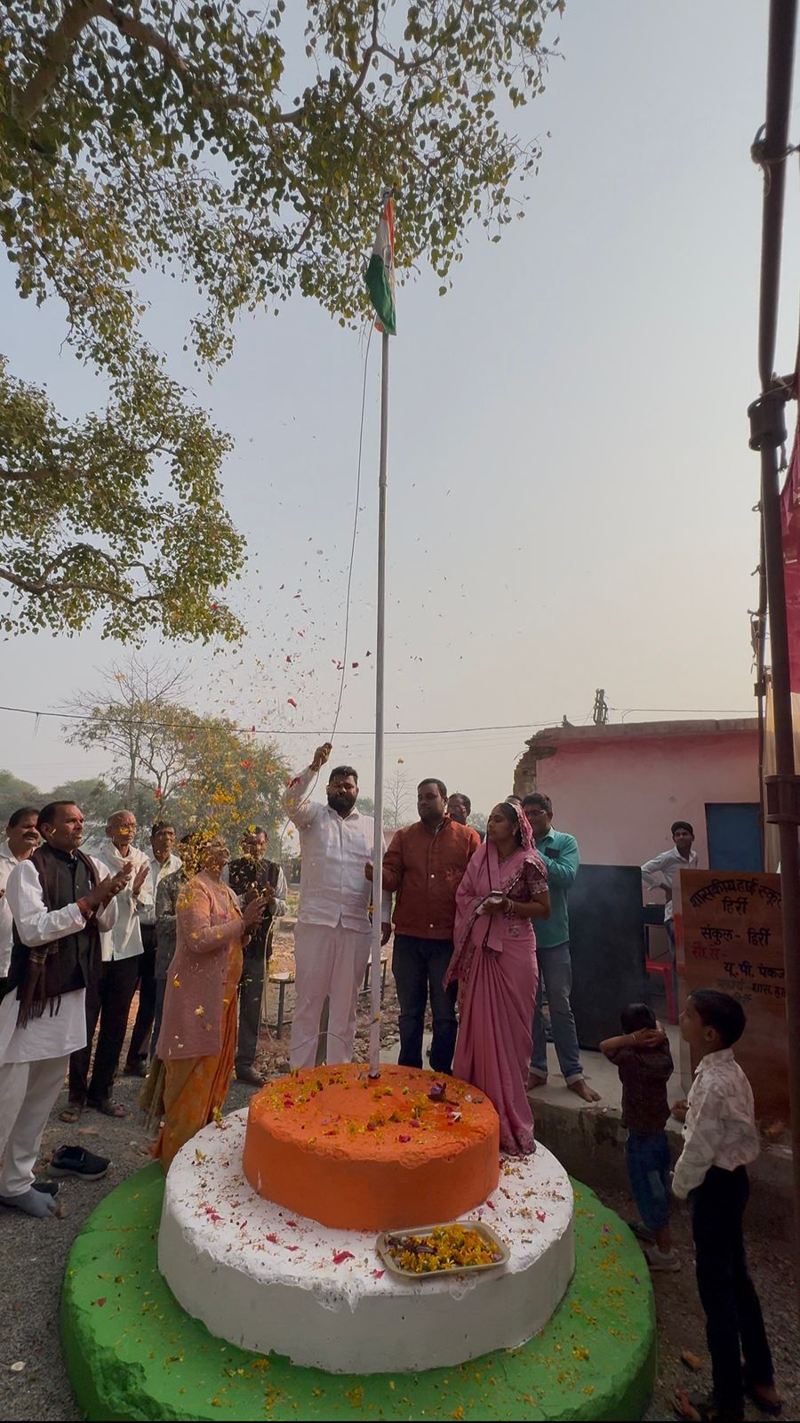 Arvind Lahariya proudly hoisted the tricolor flag at High School Hirri.