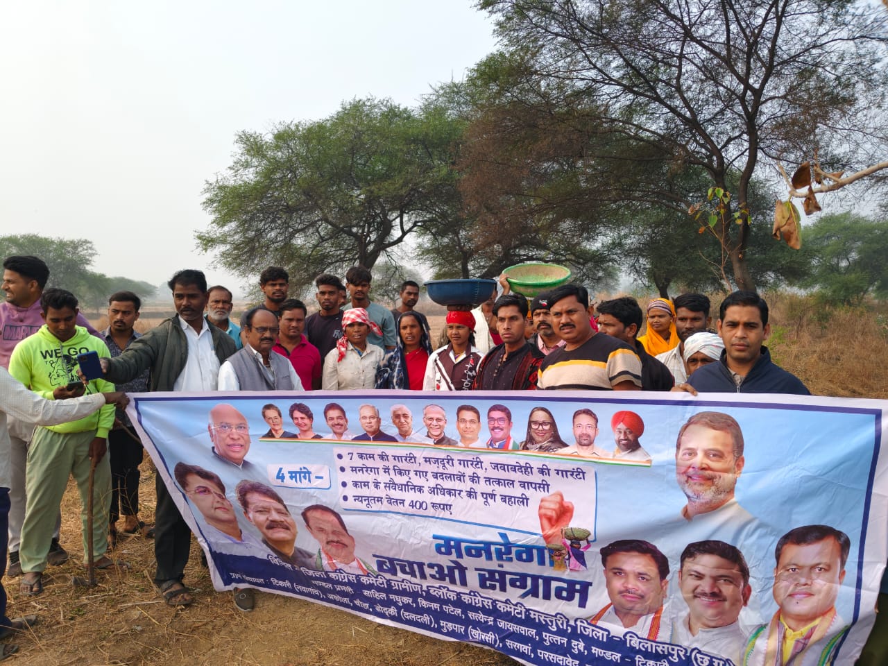 वही प्रभारी ऋतुराज भार्गव ने कहा मनरेगा की गारंटी को कानून से हटाकर सरकार की मर्जी पर निर्भर बना देता है जिससे ग्राम पंचायतों की भूमिका कमजोर हुई है और मजदूरी की गारंटी के भुगतान पर सवाल खडे हो रहे है इसे हम बर्दाश्त करने वाले नहीं। पुत्तन दुबे ने कहा कि पार्टी अपने और हमारे प्यारे मजदूर भाइयों के हक के लिए लडाई लड रहे है!मनरेगा को उसके मूल स्वरुप में बहाल किया जाए अन्यथा यह आंदोलन चलता ही रहेगा आज के कार्यक्रम में टिकारी मंडल कांग्रेस के कार्यकर्ता भारी संख्या में उपस्थित रहे।