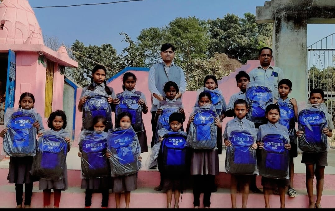 School bags were distributed to the children of Sukhapali government school in Chhattisgarh through community support from the neighboring state of Odisha.