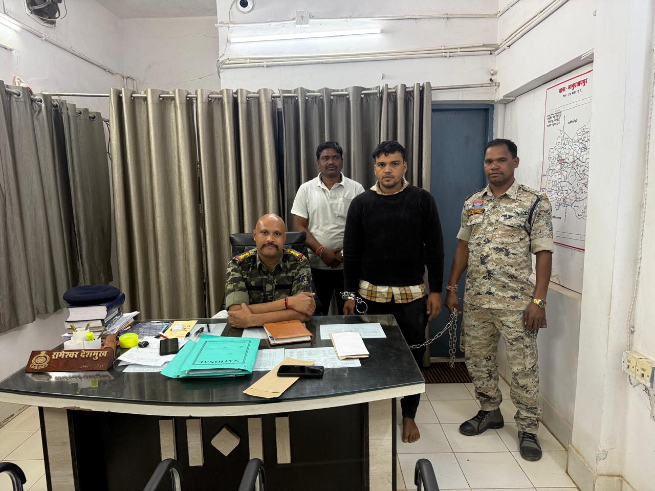 विवरण ~मामले का संक्षिप्त विवरण इस प्रकार है कि दिनांक 2:2: 2026 को थाना भानु प्रतापपुर में प्रार्थी के द्वारा रिपोर्ट दर्ज कराया गया कि उसके मोबाइल नंबर में अनजान नंबर से व्हाट्सएप वीडियो कॉल आया, इसके पश्चात मोबाइल धारक के द्वारा प्रार्थी को वीडियो फोटो वायरल करने की धमकी देकर लगभग 84000 रुपये ठगी कर लिया गया है कि रिपोर्ट पर थाना भानुप्रतापपुर में अपराध पंजीबद किया गया, मामले की गंभीरता को देखते हुए श्रीमान निखिल राखेचा (भा. पु. से.) पुलिस अधीक्षक जिला उत्तर बस्तर के निर्देशन में श्री आकाश श्रीश्रीमाल अतिरिक्त पुलिस अधीक्षक भानुप्रतापपुर के मार्गदर्शन में श्री शेर बहादुर सिंह ठाकुर अनुविभागीय अधिकारी (पुलिस) भानुप्रतापपुर के पर्यवेक्षण में थाना भानुप्रतापपुर एवं साइबर सेल से आरोपी पता तलाश हेतु टीम रवाना किया गया जो छत्तीसगढ़ पुलिस एवं राजस्थान पुलिस के समन्वय से अलवर राजस्थान से पकड़ा गया आरोपी के द्वारा अपराध कबूल करने एवं उपलब्ध साक्ष्य के आधार पर दिनांक 08.02.2026 को गिरफ्तार कर न्यायिक निर्माण पर भेजा गया,