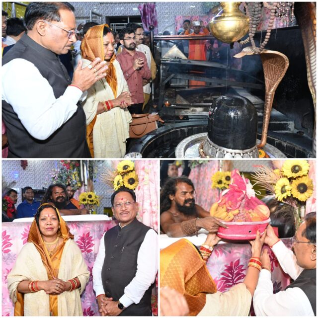 रायगढ़, महाशिवरात्रि के पावन अवसर पर मुख्यमंत्री श्री विष्णु देव साय अपनी धर्मपत्नी श्रीमती कौशल्या साय के साथ रायगढ़ प्रवास के दौरान रात एक बजे ग्राम कोसमनारा स्थित श्री श्री 108 श्री सत्यनारायण बाबा धाम पहुंचे। उन्होंने भगवान भोलेनाथ एवं श्री श्री 108 श्री सत्यनारायण बाबा की विधिवत पूजा-अर्चना कर प्रदेशवासियों की सुख-समृद्धि और खुशहाल जीवन की कामना की। इस अवसर पर मुख्यमंत्री ने पूरे प्रदेश वासियों को महाशिवरात्रि पर्व की बधाई एवं शुभकामनाएं दी।