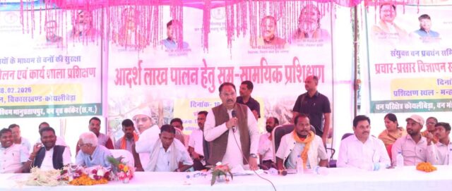 उत्तर बस्तर कांकेर, 19 फरवरी 2026/ कभी माओवाद प्रभाव के कारण विकास से दूर रहा वनांचल आज सकारात्मक परिवर्तन की मिसाल बन रहा है। पहले यहां के किसान मुख्यतः धान की खेती पर निर्भर थे, लेकिन अब शासन की पहल और वन विभाग के मार्गदर्शन से किसान लाख उत्पादन को अपनाकर अतिरिक्त आय अर्जित कर रहे हैं। वनमंडल पश्चिम भानुप्रतापपुर द्वारा कोयलीबेड़ा विकासखण्ड के किसानों को लाख पालन का प्रशिक्षण दिया जा रहा है, इसके लिए जिला खनिज न्यास निधि अंतर्गत आदर्श लाख पालन परियोजना की स्वीकृति मिली है। इस महत्वांकांक्षी परियोजना का क्रियान्वयन कोयलीबेड़ा विकासखण्ड के 06 क्लस्टर में किया जा रहा है, इनमें वन परिक्षेत्र कोयलीबेड़ा के 05 क्लस्टर क्रमशः कोयलीबेड़ा, कोतुल, चारगांव, मन्हाकाल एवं पानीडोबीर तथा पश्चिम परलकोट के 01 क्लस्टर छोटेबेठिया को शामिल किया गया है। इन सभी 06 क्लस्टरों के 621 किसानों के खेतों एवं भाठा जमीन में लगभग 4559 कुसुम के वृक्ष मौजूद हैं, इसके अलावा बेर एवं पलाश के पौधे भी हैं, जिसमें लाख पालन कार्य किया जा सकता है। वर्तमान में कुसुम वृक्षों में ब्लेजिंग, मार्किंग एवं शाखा कटाई-छंटाई का कार्य जारी है। लाख पालन के लिए किसानों को प्रशिक्षण दिया जा रहा है, इसके लिए कोयलीबेड़ा विकासखण्ड के सुदूर वनांचल के ग्राम पंचायत छोटेबोदेली के आश्रित ग्राम मन्हाकाल में कार्यशाला सह प्रशिक्षण का आयोजन किया गया। इस प्रशिक्षण कार्यक्रम के मुख्य अतिथि स्थानीय विधायक श्री विक्रमदेव उसेण्डी थे तथा अध्यक्षता श्री लच्छूराम गावड़े के द्वारा की गई। कार्यक्रम में जनपद अध्यक्ष कोयलीबेड़ा श्रीमती श्यामबती मंडावी, जिला वनोपज सहकारी संघ पश्चिम भानुप्रतापपुर वनमंडल के अध्यक्ष सुकलाल देहारी, वन विभाग के एसडीओ आर.एन. शोरी, एम.एस. नाग, जी.एस. जामड़े, क्षेत्र के गायता, पुजारी, लघु वनोपज सहकारी समिति के अध्यक्ष, वन सुरक्षा समितियों के सदस्य सहित अन्य जनप्रतिनिधिगण शामिल थे।