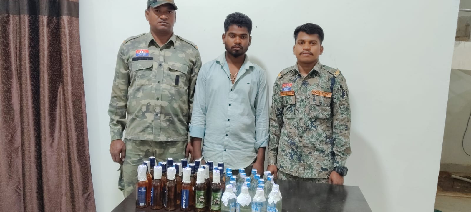 ◽ 02 प्लास्टिक के थैले में 19 नग शोले प्लेन देशी शराब ,05 नग वन शाॅट व्हिस्की अंग्रेजी शराब, कुल शराब की मात्रा 04 लीटर 320 एमएल जुमला कीमती 2520 रूपये।