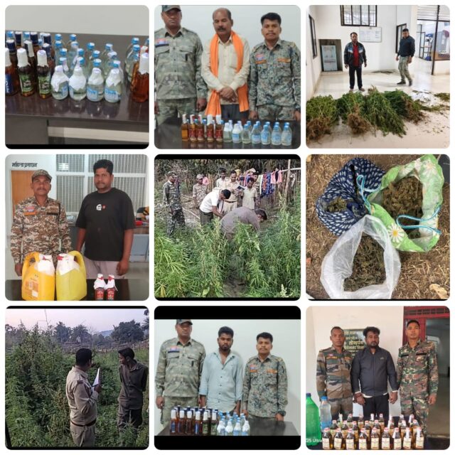 🔷 लगभग 20 लाख मूल्य कीमत के गांजा, शराब एवं नशीली दवाओं के विरुद्ध कार्यवाही।