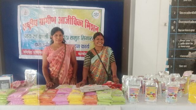 कांकेर विकासखंड के ग्राम बार देवरी में कंचन महिला कलस्टर समूह के द्वारा तैयार किया जा रहा है बिहान हर्बल गुलाल पर्यावरण संरक्षण और महिला सशक्तिकरण की सुंदर मिसाल बनकर उभरा रहा है । ग्राम बार देवरी के कीर्ती साहू व सूरज नाग चर्चा में बताया कि रासायनिक रंगों के