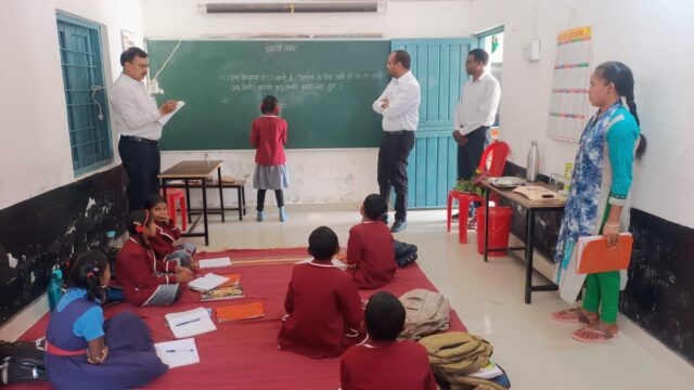 उत्तर बस्तर कांकेर, 12 मार्च 2026/ कलेक्टर श्री निलेशकुमार महादेव क्षीरसागर के निर्देशानुसार अपर कलेक्टर श्री जितेंद्र कुमार कुर्रे ने आज पीएम श्री प्राथमिक शाला केवटीनटोला का निरीक्षण किया। उन्होंने विद्यालय की समस्त गतिविधियों का जायजा लेते हुए सभी कक्षाओं में शैक्षिक गुणवत्ता की जांच के लिए बच्चों से प्रश्न किये, जिसका उत्तर बच्चों के द्वारा सही-सही दिया गया। कक्षा पहली के बच्चों ने ग्रीन बोर्ड में लिखित अपठित कहानी के वाक्य को पढ़कर सुनाया। कक्षा चौथी में गुणा संक्रिया बनाये कक्षा पांचवी में अंग्रेजी पुस्तक के पाठ का वाचन बच्चों के द्वारा किया गया तथा ग्रीन बोर्ड में पहाड़ा बनाकर भी दिखाया। इस अवसर पर खंड शिक्षा अधिकारी श्री केज़ूराम सिन्हा मौजूद थे।