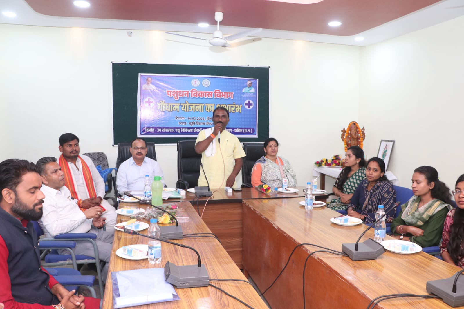 उत्तर बस्तर कांकेर, 14 मार्च 2026/ मुख्यमंत्री श्री विष्णु देव साय ने आज जिला बिलासपुर के तखतपुर विकासखण्ड के ग्राम लाखासार से गौधाम योजना का शुभारंभ किया। इस अवसर पर कांकेर के कृषि विज्ञान केन्द्र में वर्चुअल कार्यक्रम आयोजित किया गया। कार्यक्रम के मुख्य अतिथि छत्तीसगढ़ राज्य गौसेवा आयोग के जिला स्तरीय समिति कांकेर के अध्यक्ष श्री सोनसाय साहू थे। उन्होने कार्यक्रम को संबोधित करते हुए कहा कि यह योजना गौ-सेवा के क्षेत्र में कल्याणकारी एवं महत्वाकांक्षी योजना है, इससे हम घुमंतू पशुओं का संरक्षण और संवर्धन कर करते हैं। गौधाम का संचालन पंजीकृत एनजीओ एवं स्व-सहायता समूहों के माध्यम से किया जा सकता है, इसके लिए गांव में उपलब्ध गौठान जो सर्वसुविधायुक्त जैसे- बिजली, पानी, फेंसिंग, पर्याप्त जगह इत्यादि हो, में किया जा सकता है। गौधाम के संचालन के लिए सेवाभावी होना बहुत जरूरी है, सरकार अनुदान के रूप में मदद दे सकती है, लेकिन सेवाभावी होने से ही हम गौ धन की बेहतर सेवा कर सकते हैं। गौधाम संचालन के लिए पंजीकृत स्व-सहायता समूह एवं एनजीओ आवेदन कर सकते हैं। श्रीमती निर्मला नेताम एवं प्रदीप साहू ने भी कार्यक्रम को संबोधित किया।