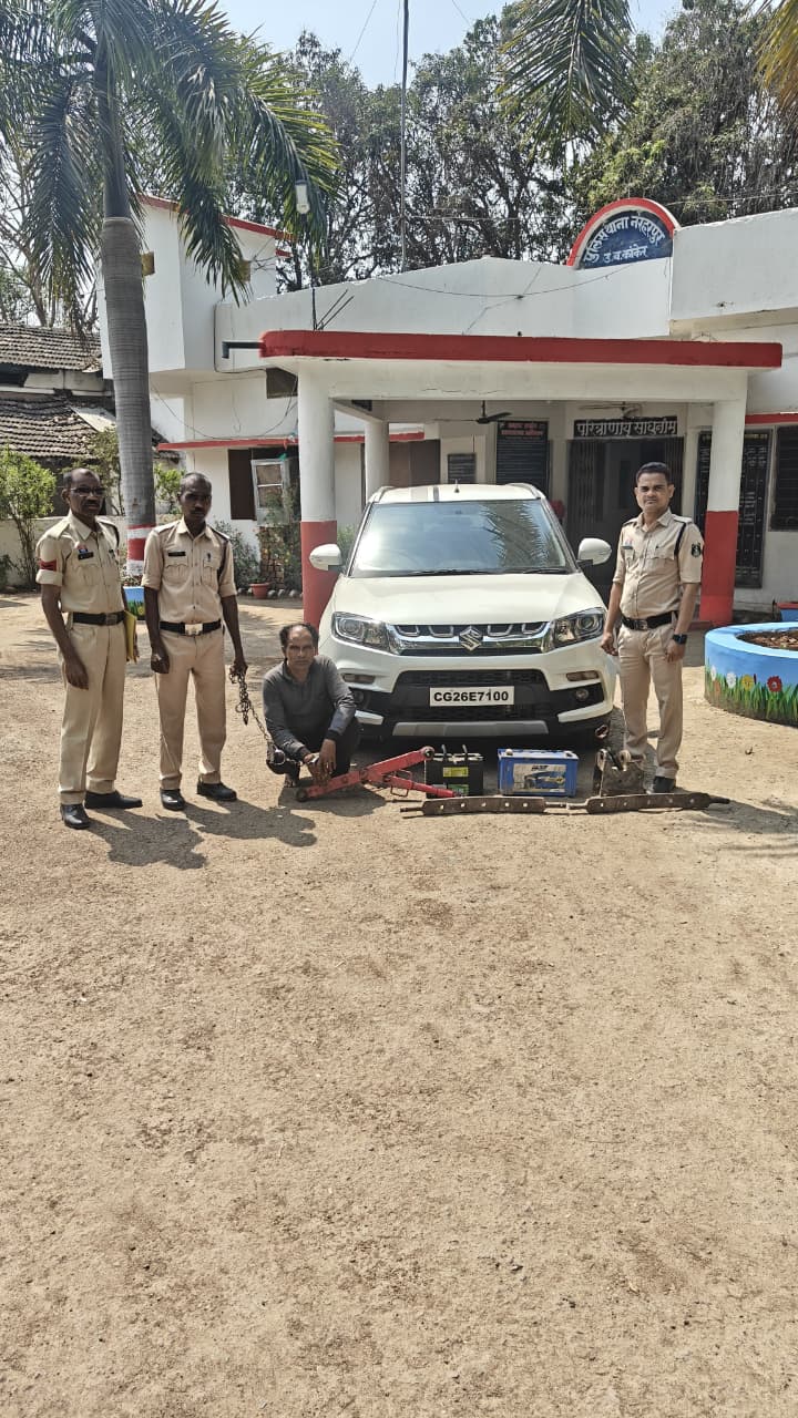➡️चोरी किये सामानों को अपने वाहन CG 26 E 7100 में रखकर बेचने के फिराक में ग्राहक तलाश कर रहा था आरोपी।
