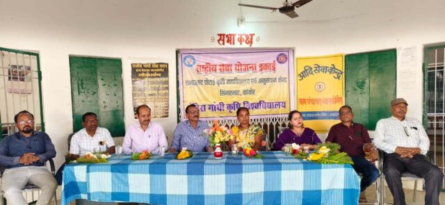 उत्तर बस्तर कांकेर, 18 मार्च 2026/ रामप्रसाद पोटाई कृषि महाविद्यालय एवं अनुसंधान केंद्र सिंगारभाट द्वारा ग्राम व्यासकोंगेरा में आयोजित सात दिवसीय राष्ट्रीय सेवा योजनांतर्गत विशेष शिविर का सफलतापूर्वक समापन किया गया। समापन समारोह में मुख्य अतिथि के रूप में इंदिरा गांधी कृषि विश्वविद्यालय रायपुर के अनुवांशिकी एवं पादप प्रजनन विभाग के विभागाध्यक्ष डॉ. पी. के. जोशी विशेष रूप से उपस्थित हुए।